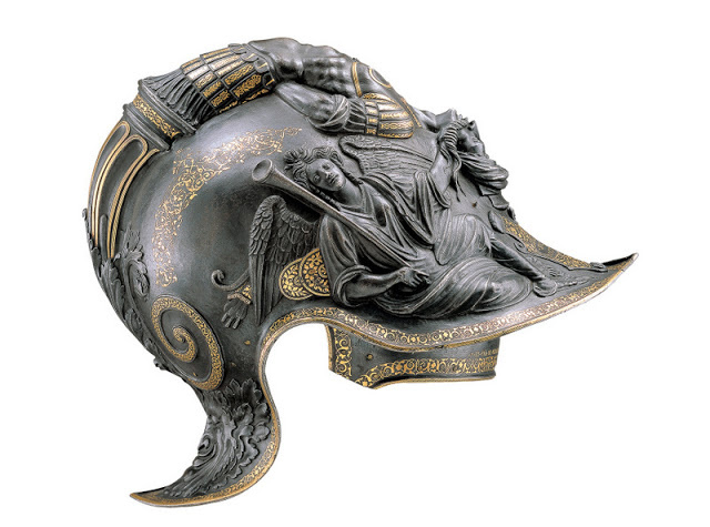 Η Περικεφαλαία με τα Κέρατα, Ίνσμπρουκ, Αυστρία, 1511-1514. Τμήμα της πανοπλίας που παρουσίασε ο Άγιος Ρωμαίος Αυτοκράτορας Μαξιμιλιανός Α' στον Ερρίκο Η' της Αγγλίας. Δημιουργία του Konrad Seusenhofer.
