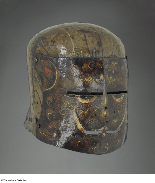 Κλειστή περικεφαλαία με "ζελατίνα", του Kolman Helmschmid από το Άουγκσμπουργκ της Γερμανίας, 1515 περίπου. Οι αλλόκοτες περικεφαλαίες σαν ανθρώπινο πρόσωπο ήταν δημοφιλής στην Γερμανία και την Αυστρία στις αρχές του 16ου αιώνα.